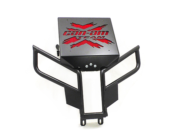 Передний бампер на BRP Can-Am Renegade 1000. Изготовлен из нержавеющей стали. Покрашен антикоррозийным покрытием. Имеет удобное крепление раме. В комплекте вынос радиатора из 4 мм алюминия. Вынос радиатора крепится на бампер. Вес бампера 5,9 кг