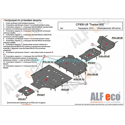 Комплект защиты днища для CF Moto UTV U800 Tracker 800